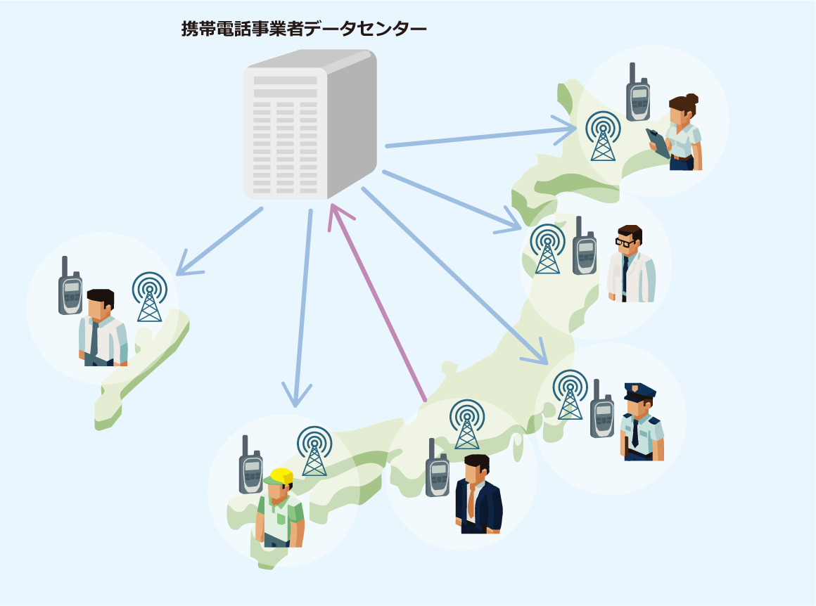 全国どこでもリアルタイムに一括指示が可能。携帯電話網を利用するため、エリアをまたいだ現場でもスムーズに連携できます。
